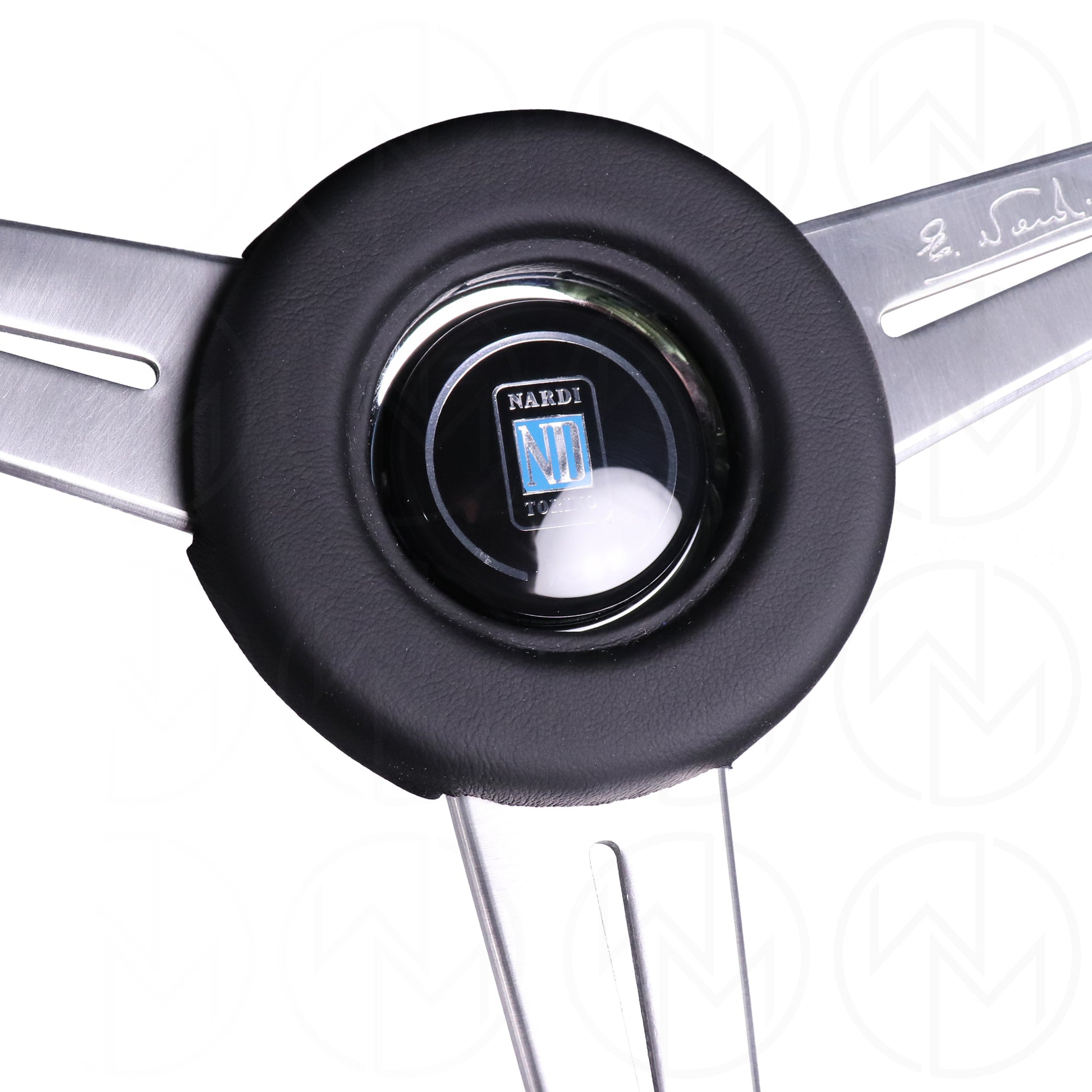 Nardi Classic Steering Wheel - 365mm Leather w/Satin Spoke & Leather Ring and Black Stitch
