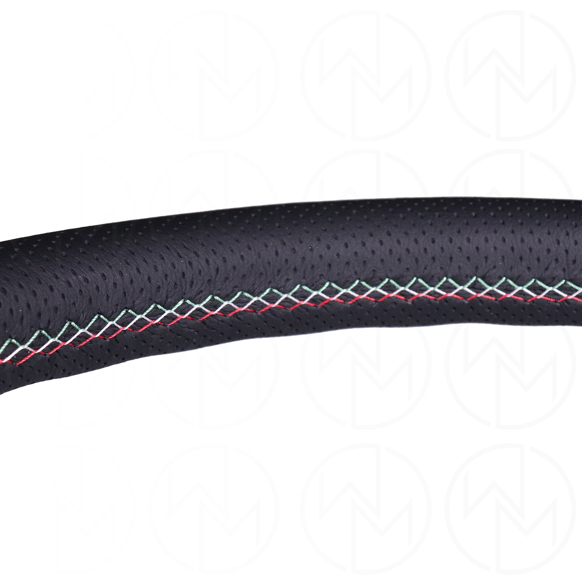 - Black perforated leather grip material