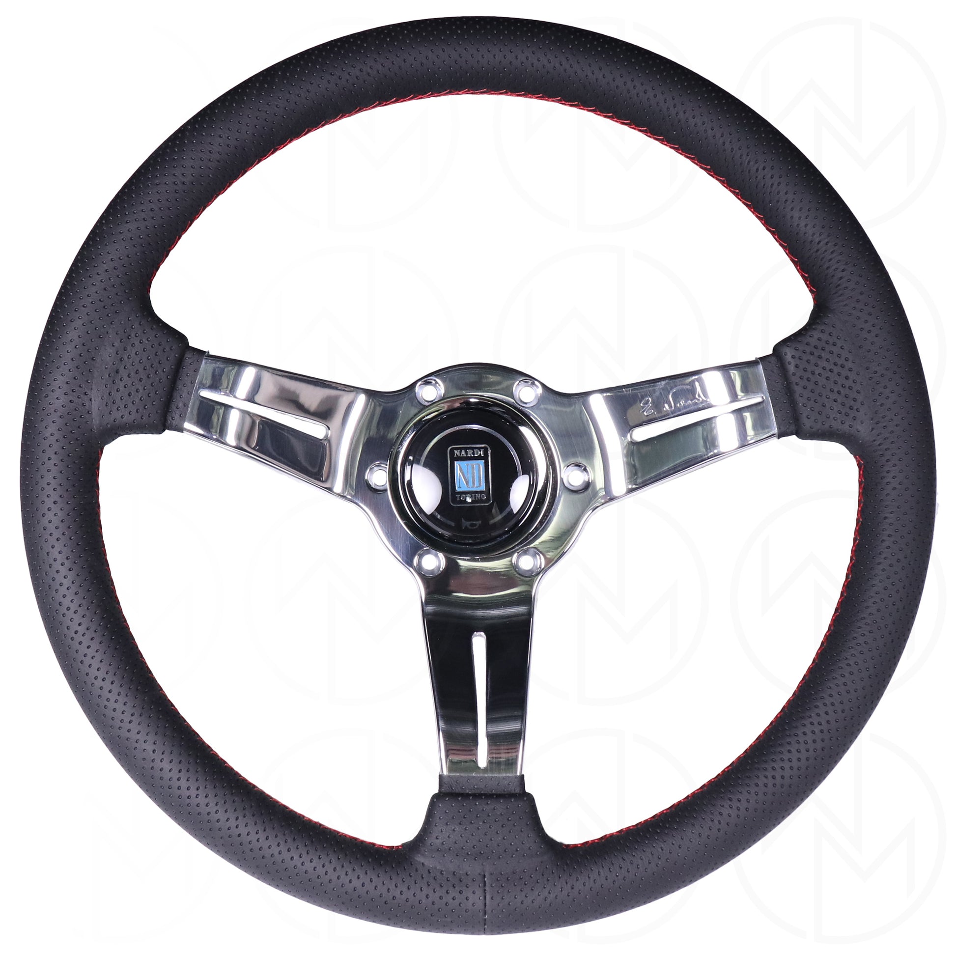 Nardi Deep Corn Steering Wheel - 330mm Perforated w/ Polished Spokes & Red Stitch