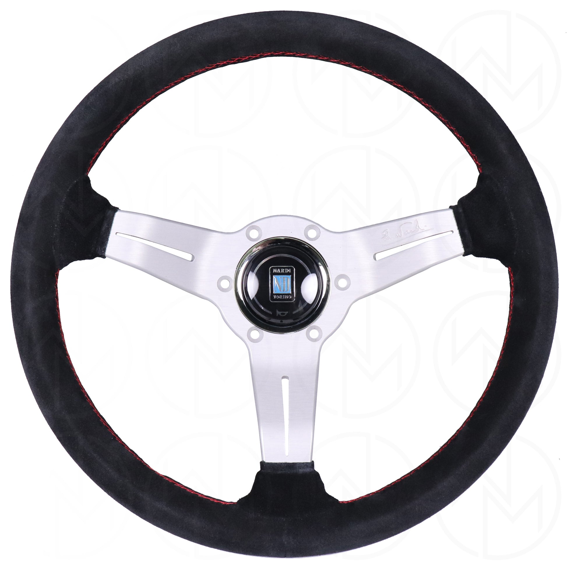 Nardi Sport Rally Deep Corn Steering Wheel - 330mm Suede w/Silver Spokes and Red Stitch