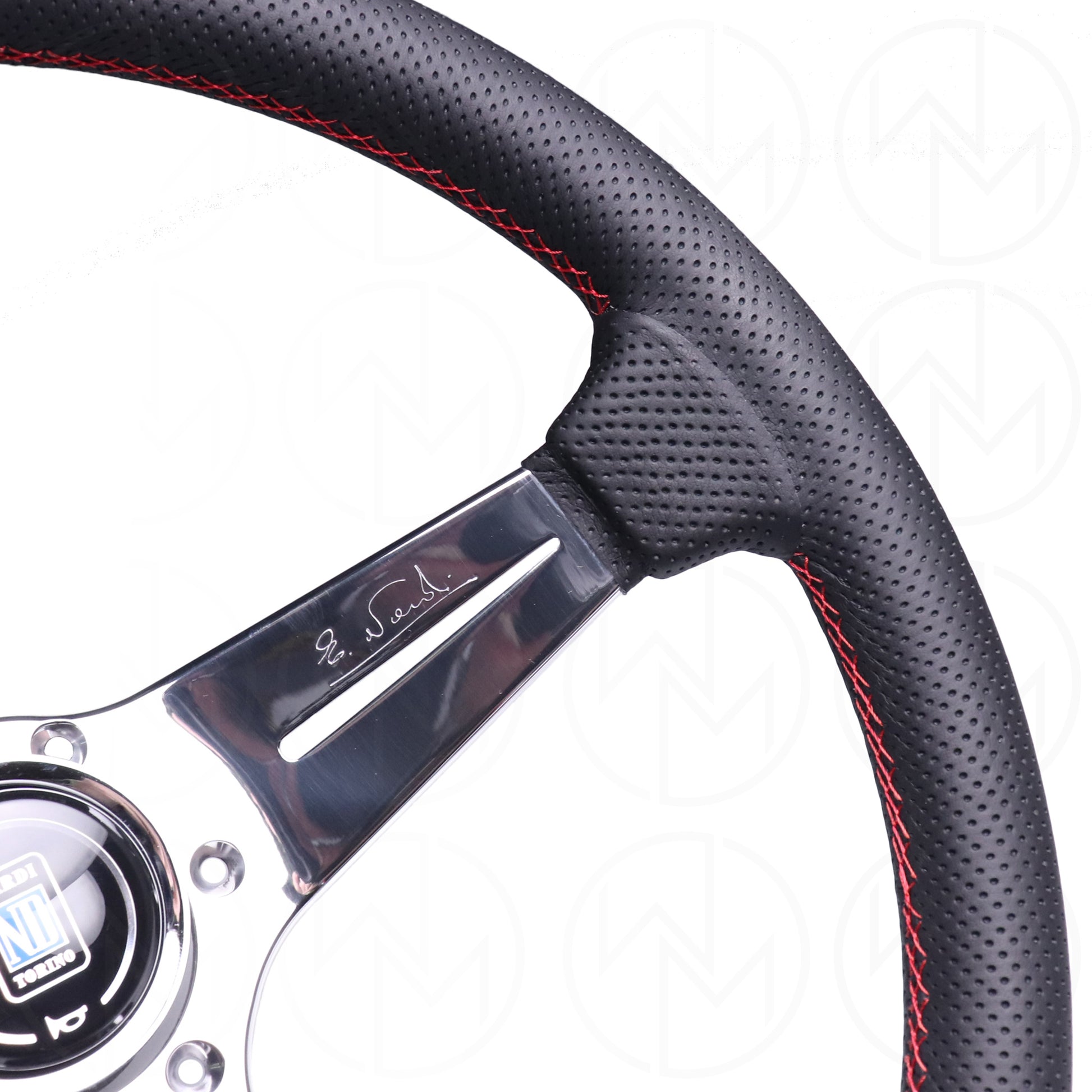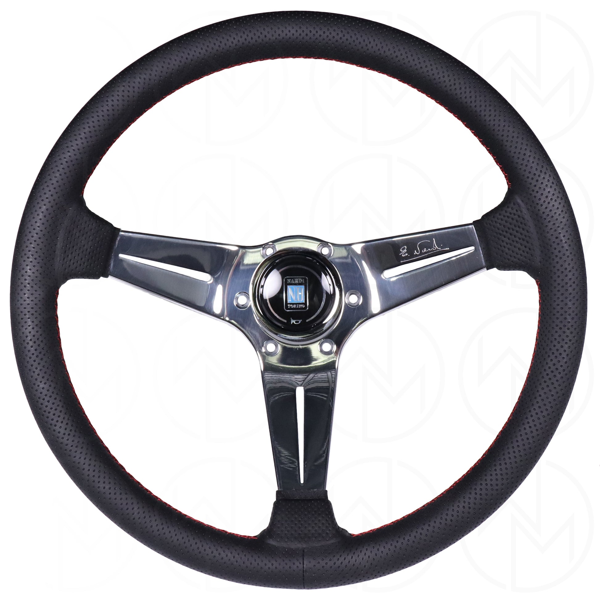 Nardi Deep Corn Steering Wheel - 350mm Perforated w/ Polished Spokes & Red Stitch